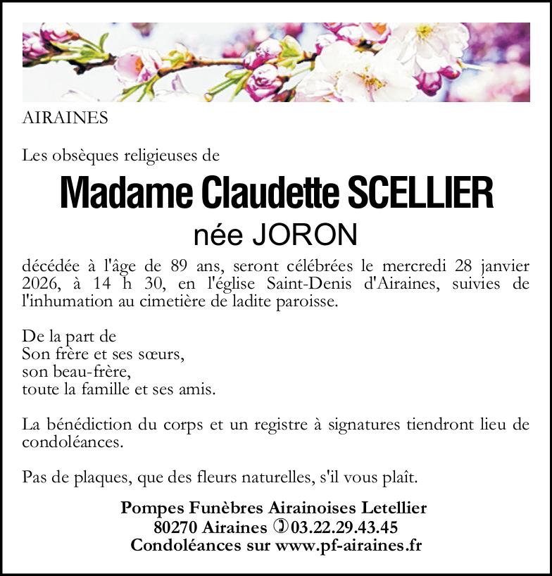 Déroulement des funérailles de Madame Claudette SCELLIER